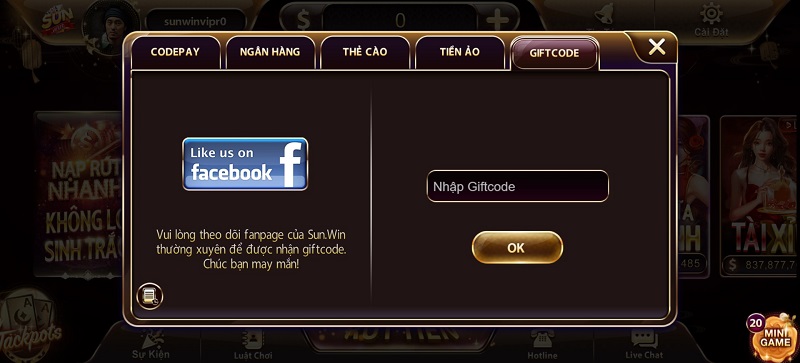• Cách thực hiện: Người chơi cần nhập mã gift code vào hệ thống để nạp tiền. Hình thức này không chỉ tiện lợi mà còn thường xuyên đi kèm với các chương trình khuyến mãi hấp dẫn.